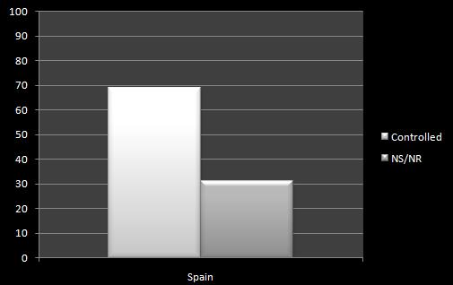 Similar to the contradictious results observed on the two articles from Netherlands, Spain presents two different results. The first chart shows a proportion of 15% controlled children, while the second one has 70%.